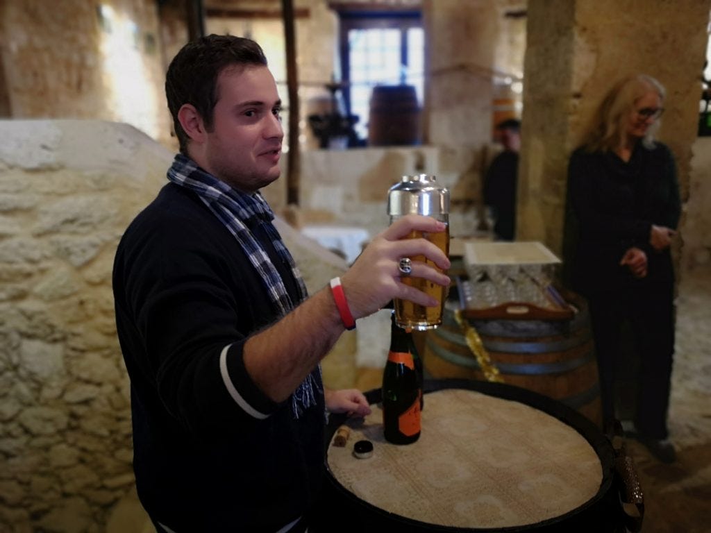 So the Pousse Rapière cocktail is basically an hommage to stabbing someone in the neck. It is actually made from a combination of Pouse Rapière, an Armagnac liqueur, and vin sauvage. Naturally, the chateau will sell you glasses with a rapière logo, which you fill with the liqueur to the tip of the rapière, and the the rest with bubbly.