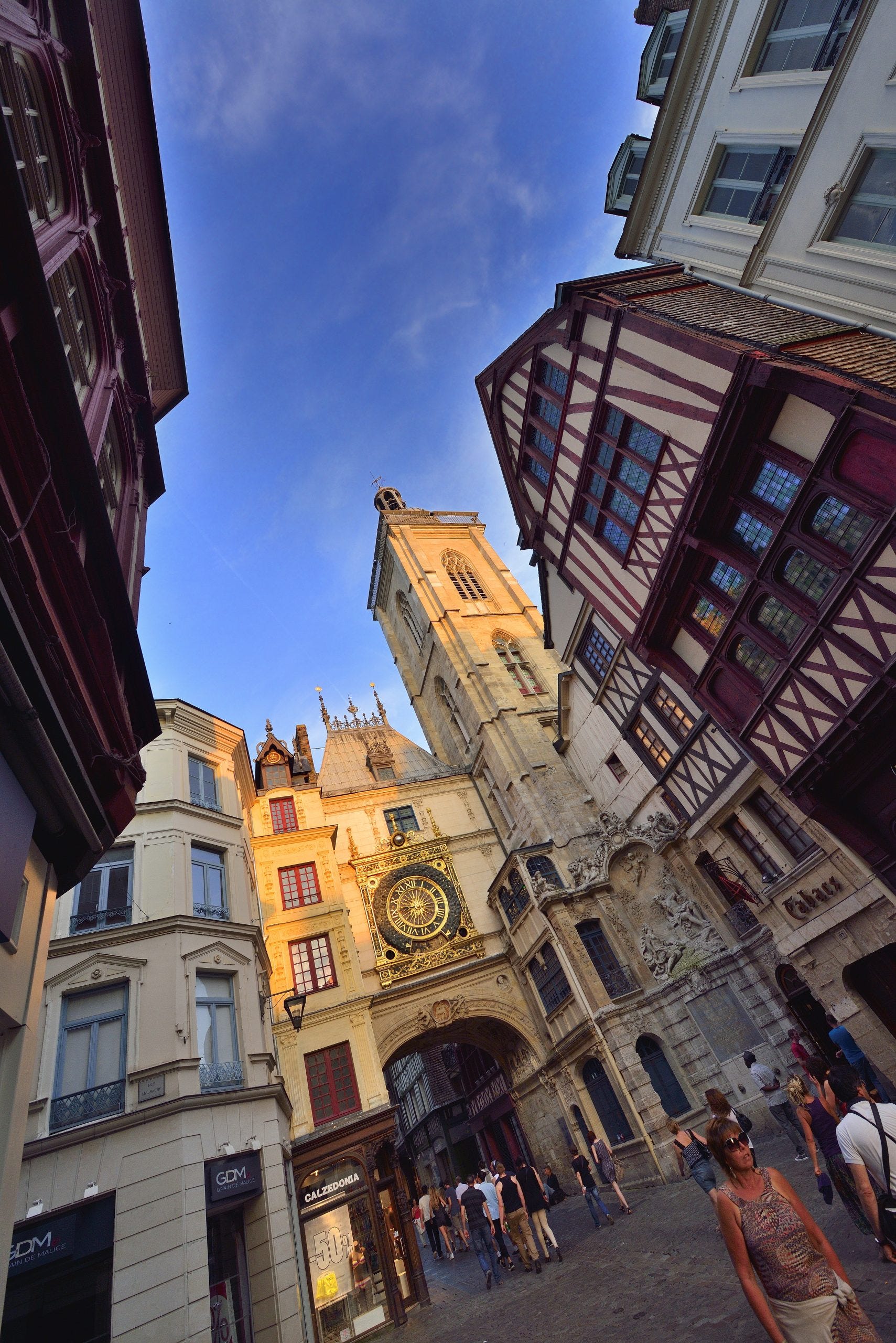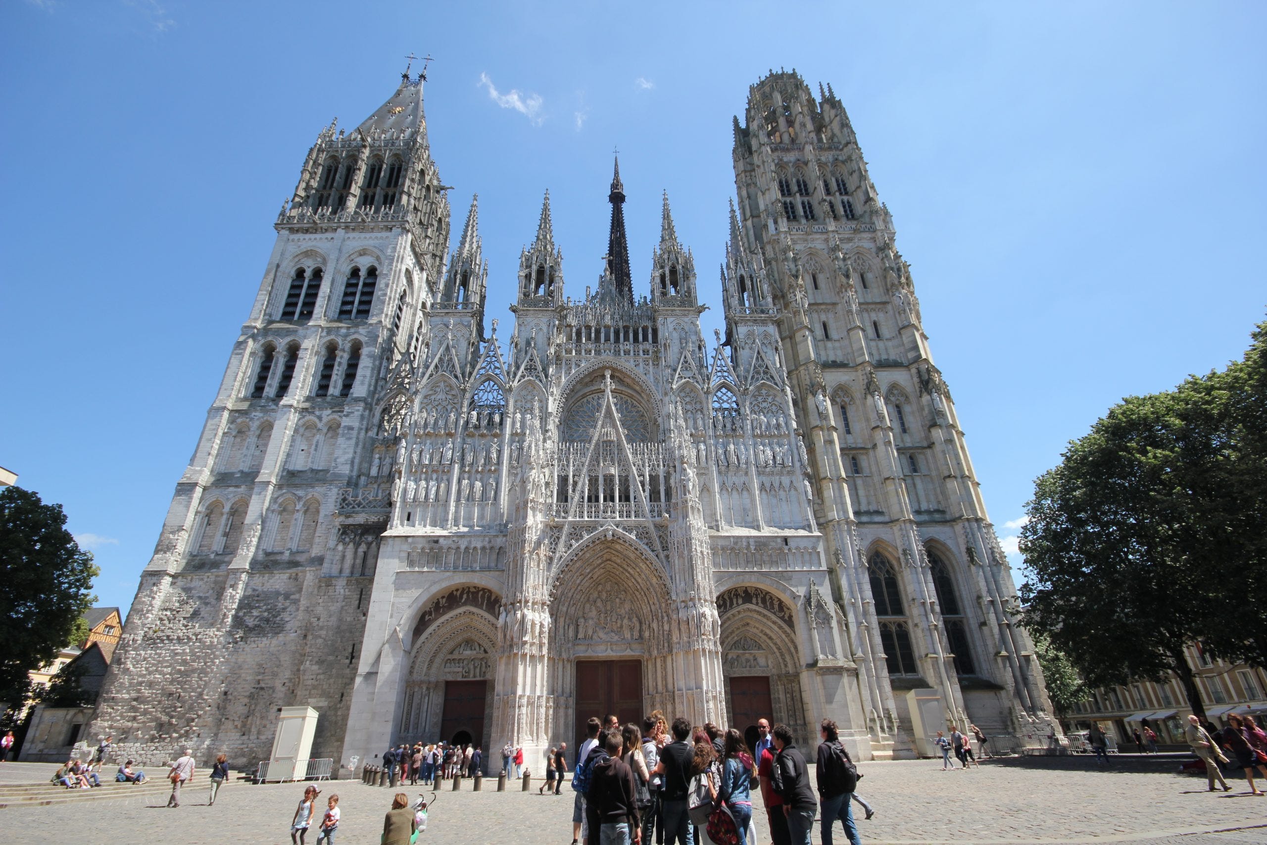 The city of Rouen in Normandy straddles the Seine River. At its center stands the Cathedral Notre Dame of Rouen, a masterpiece of Gothic art that is far larger than its cousin in Paris. Historically, the city was the English capital of Normandy and also where Joan of Arc was tried and then burned alive. On a more upbeat note, the city center is a delight of Medieval architecture that also includes an astronomical clock.
