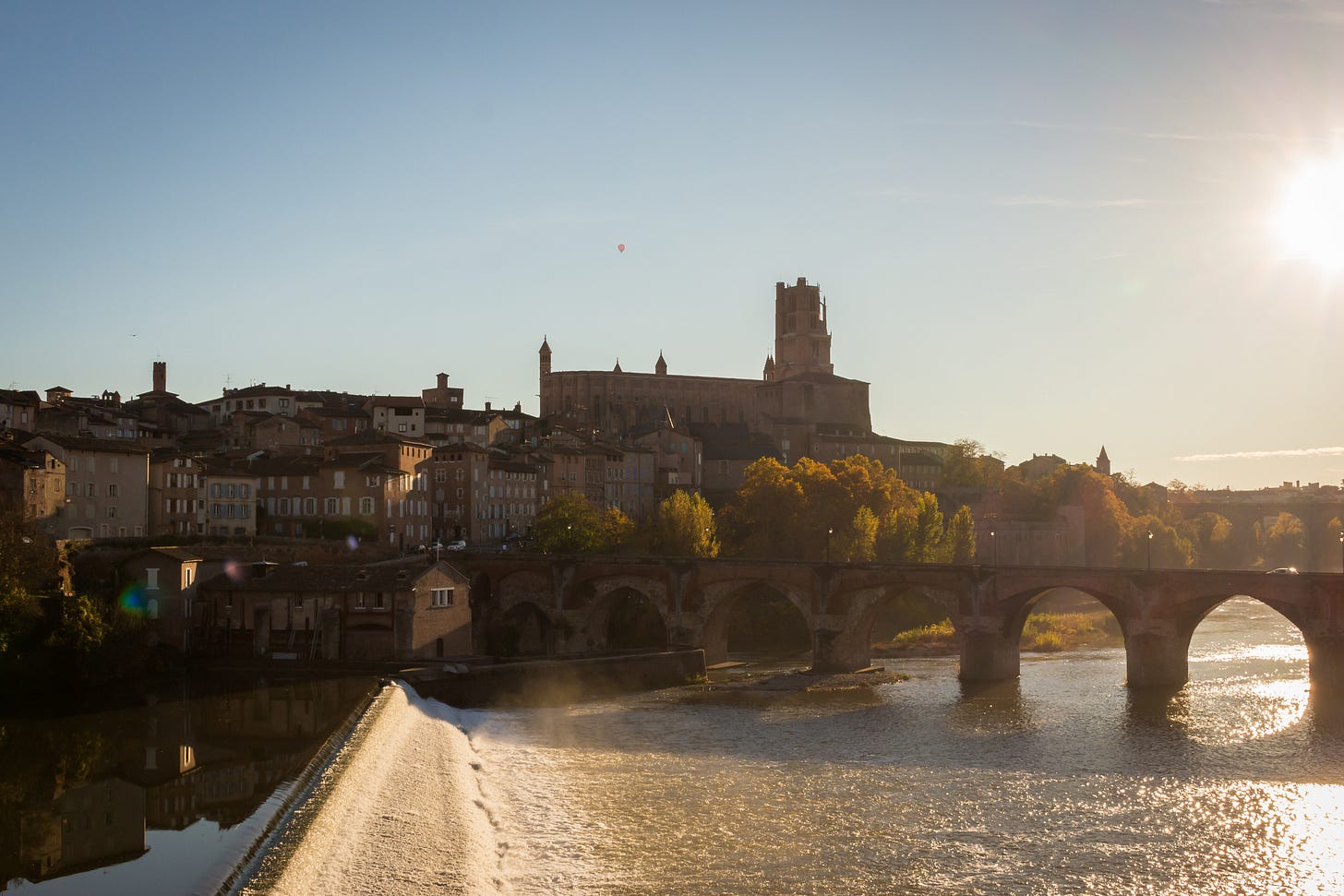 The city of Albi is located in the Tarn Department in the Occitanie Region. Its omnipresent red brick buildings make it a kind of architectural kissing cousin of Toulouse. The cities also share a bloody history thanks to the Albigeois Crusade that saw northern Frenchmen swoop into the South in the early 1200s to put down the heretical movement known as the Cathars.