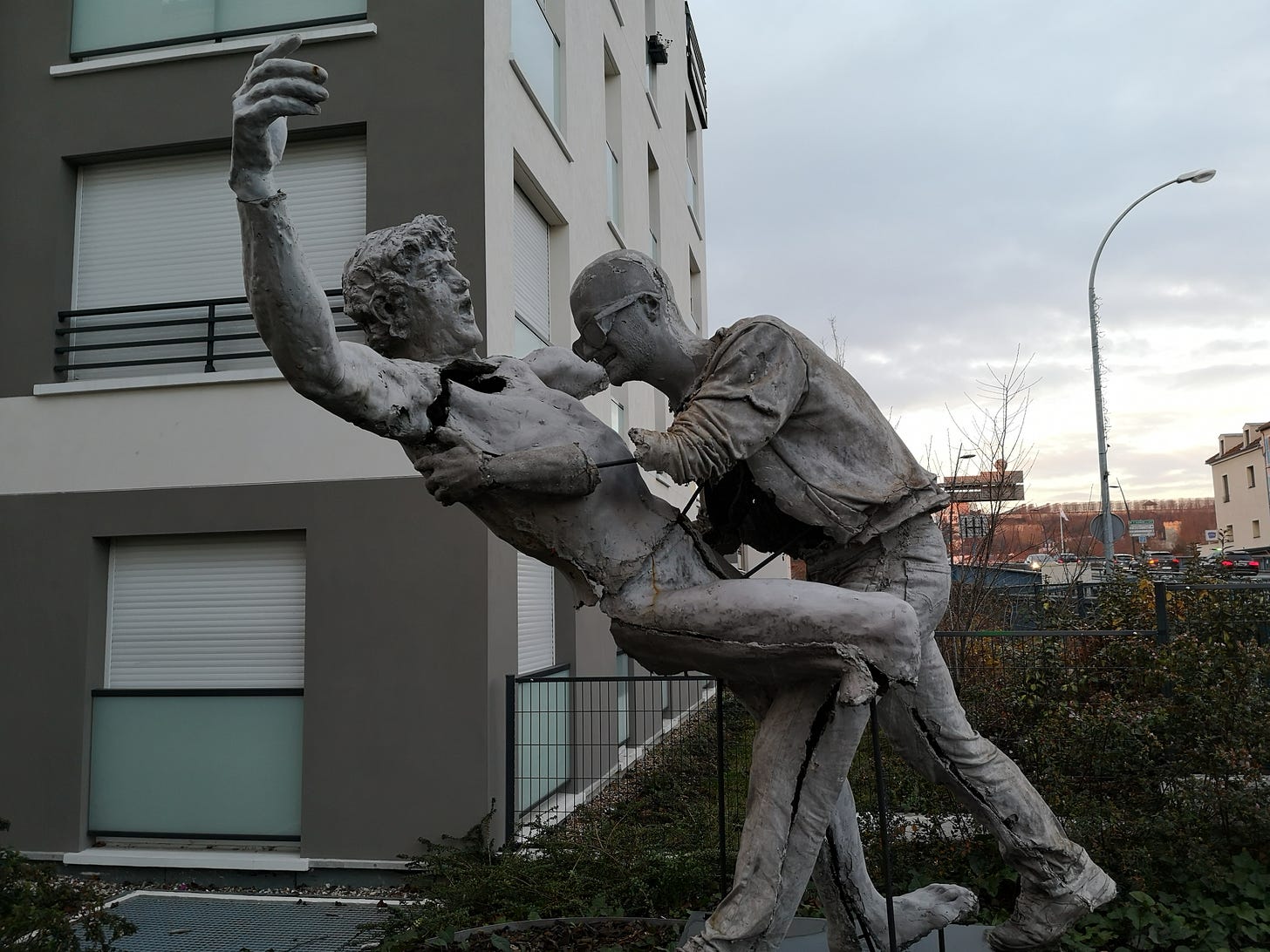 Perhaps this statue by Ugo Shiavi captures it best. I stumbled across it in the town of Le Pecq while going to pick up a rental car one morning. It suggests a “dialogue between the past and the present,” according to a sign next to the statue. Though to my eyes, it seems like the past is getting its ass kicked.