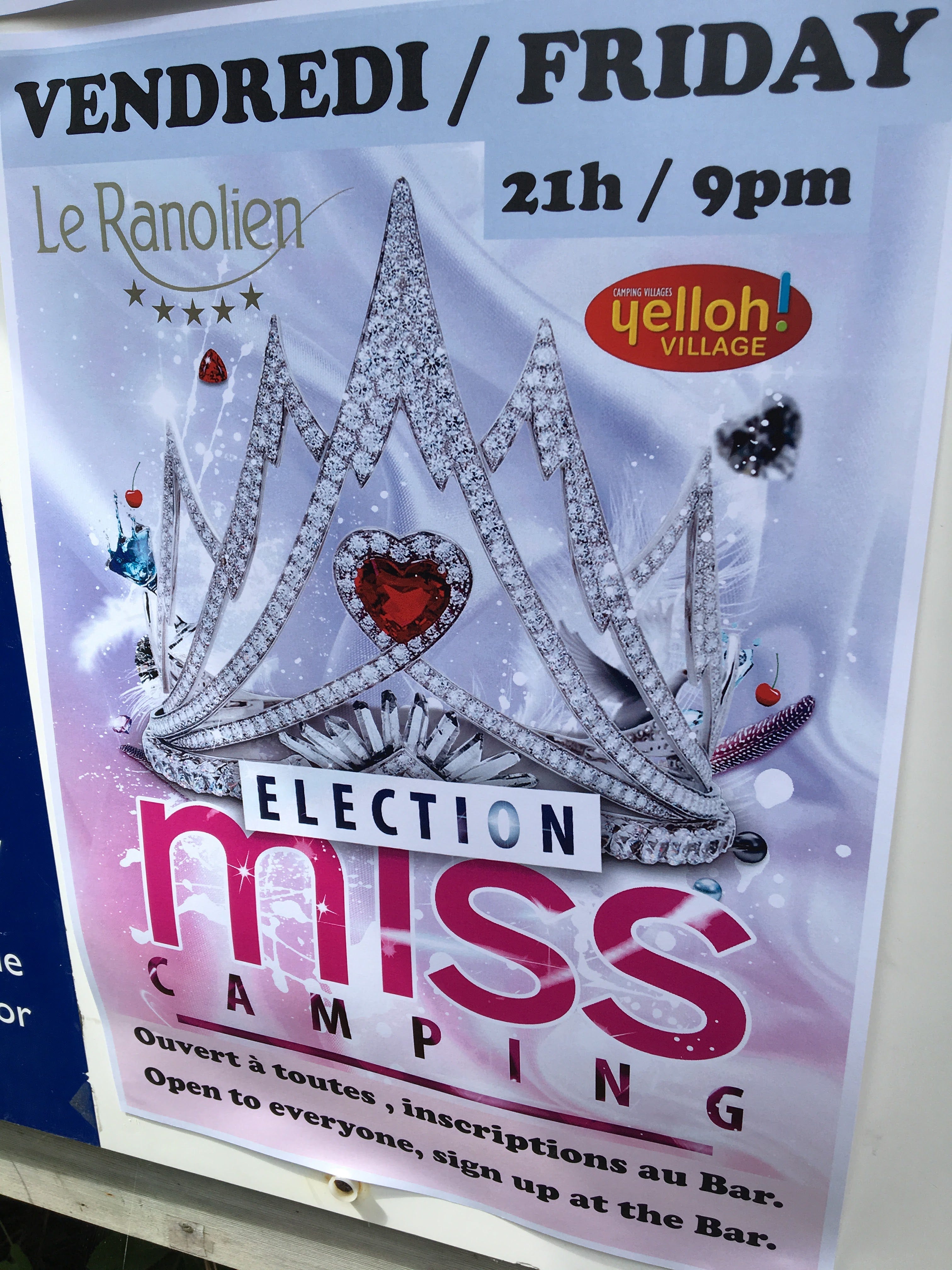 Perhaps it was the Johnny Hallyday imitator. Or perhaps it was the child beauty pageant. All I knew was that mid-way through our first stay at one of France’s 5-star campgrounds, I would never be allowed to live this down.