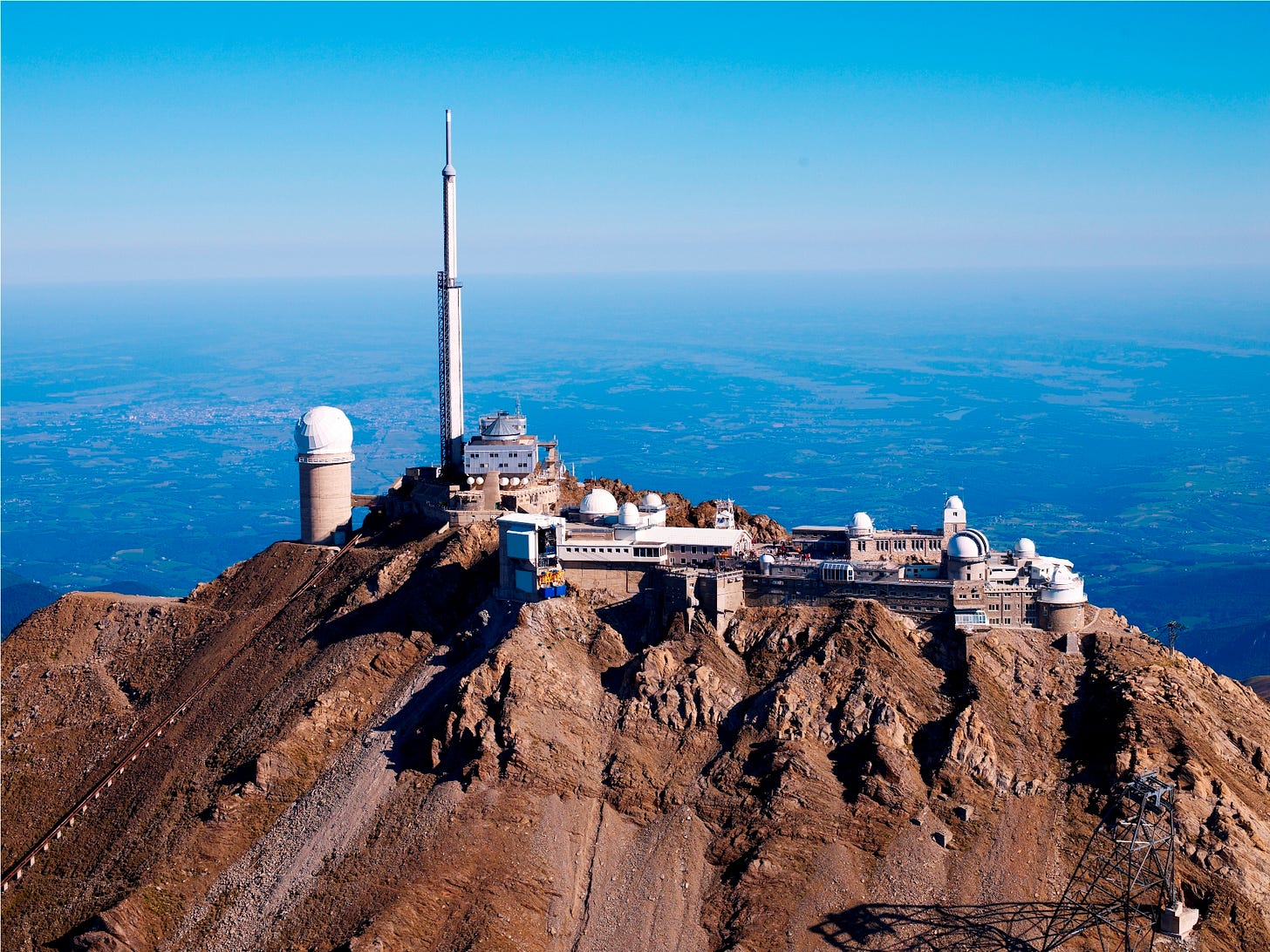 The Pic du Midi de Bigorre is located in the Hautes Pyrénées department and the Occitanie Region. The observatory perched on top of the 2877-meter summit allows for panoramic views across the 300 km mountain ranges that run along the French and Spanish border.