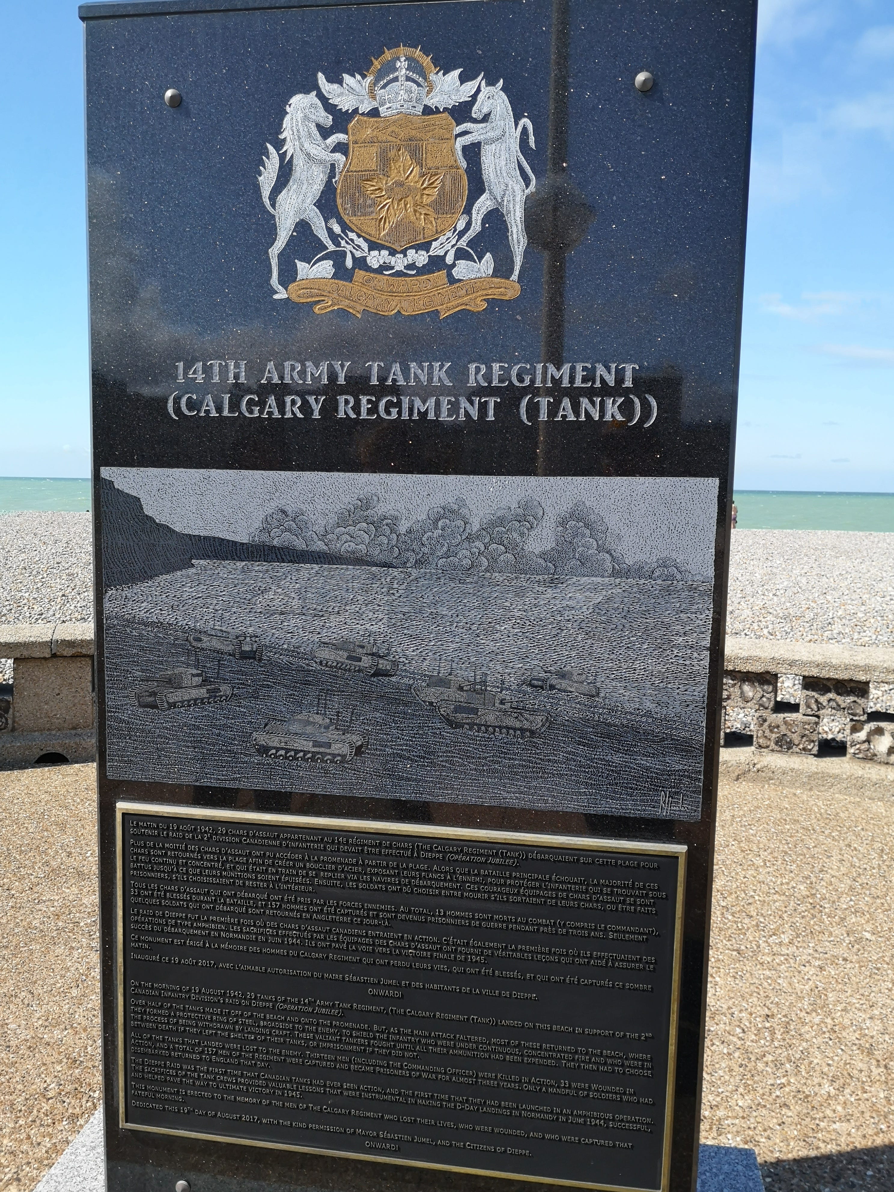 None of this has dimmed the gratitude of Dieppe residents, who continue to celebrate the sacrifices. Indeed, the monument pictured above was put in place just 4 years ago. Memories are long in France where the past is ever-present.