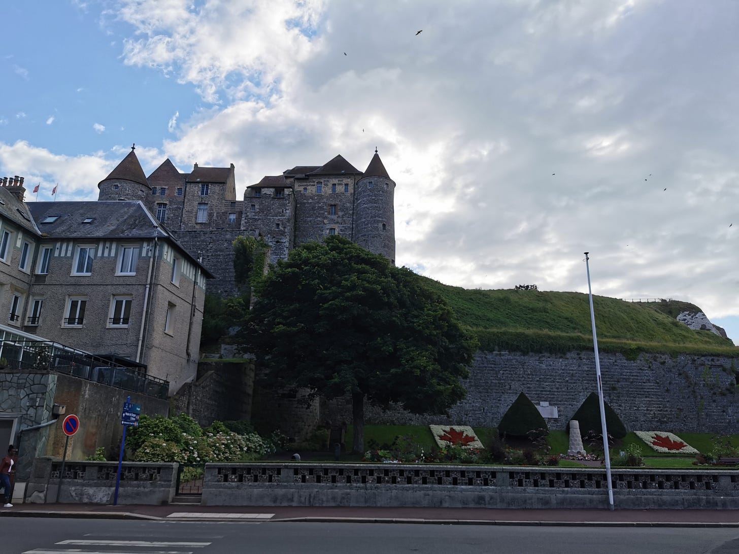 We arrived at Dieppe at the end of our 4-day catastrophically awful bike trip from Paris. This was my first time in this Normandy town, and as we pedaled to the beach to take the obligatory mock-triumphal photo on the beach, I noticed a steady gaggle of Canadian flags. Of course, there is a historic link between France and Canada, but the number of flags and various Canadian iconography suggested a deeper connection.