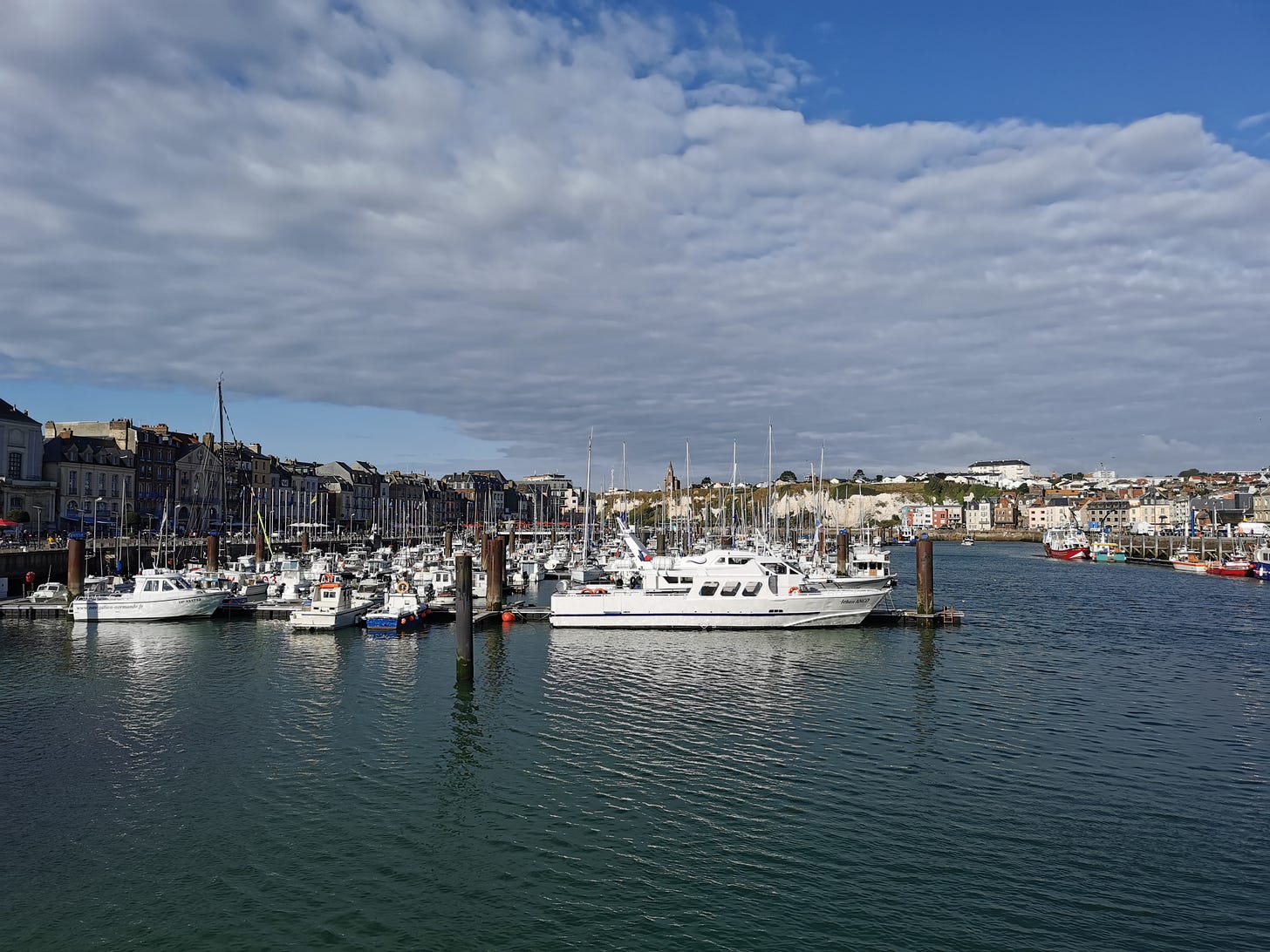 We then strolled around the inner harbor where we stopped at a random restaurant along the waterfront because we were starving. Alas, it was disappointing. Never stop at the first restaurant. We then strolled to the beach where we walked out to the end of the pier for a panoramic view of the town and then down the promenade. Villa’s owner had suggested the Les Bains de Dieppe at the far end of the beach which has large indoor heated pools, including a jacuzzi, and a spa with a hammam and steam room for just 15 euros per person. We deserved these small luxuries.