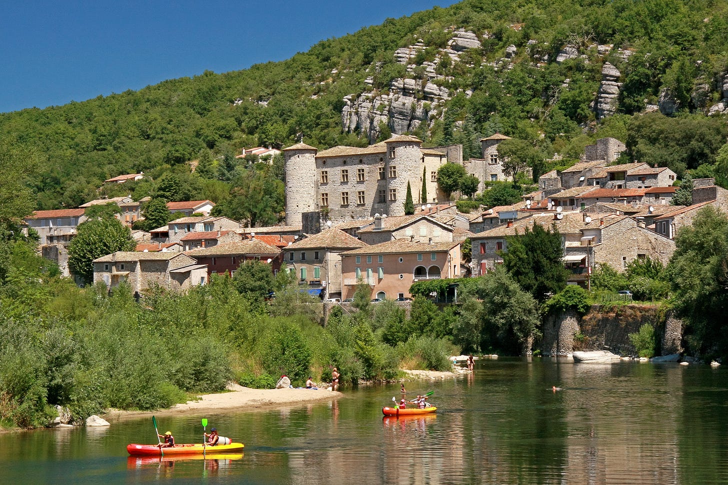 Before dipping into the river, however, stroll around the Medieval streets of Vogüé to see a small chapel called La Gleyzette which overlooks Le Château de Vogüé and its suspended garden.