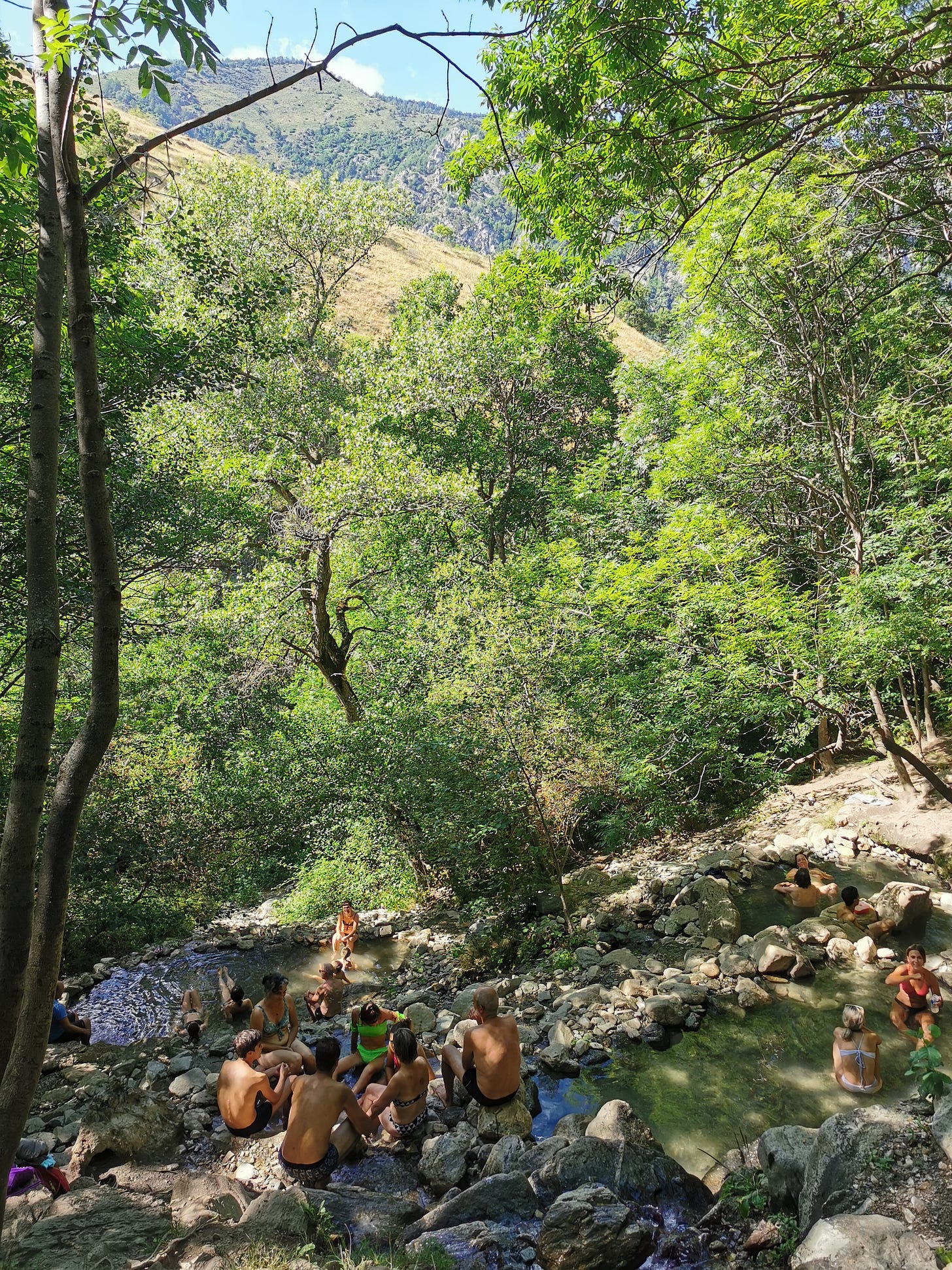 At that far eastern edge, there are spectacular beaches. But during a two-week trip last summer, we spent most of our time exploring its natural wonders further inland. This includes some of the best thermal baths we have found in France. Not only did we visit a couple of thermal stations, but we also wandered out into the wilderness and found some of the natural hot springs flowing from sources right out of the ground. People have improvised stone pools to capture the water. Hikers jealously guard the exact locations, so you have to do some detective work to find them. But it was well worth the effort. (See photo above and more details here.)