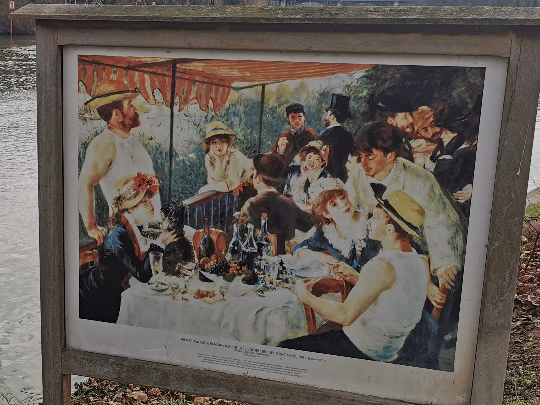 Still walking along the banks, we did stumble across La maison Fournaise (see photo above), which was the setting for Augie Renoir’s famous Le Déjeuner des canotiers (Luncheon of the Boating Party) painting. (Side note: The translation fits with my theory that stuff just sounds better in French.)