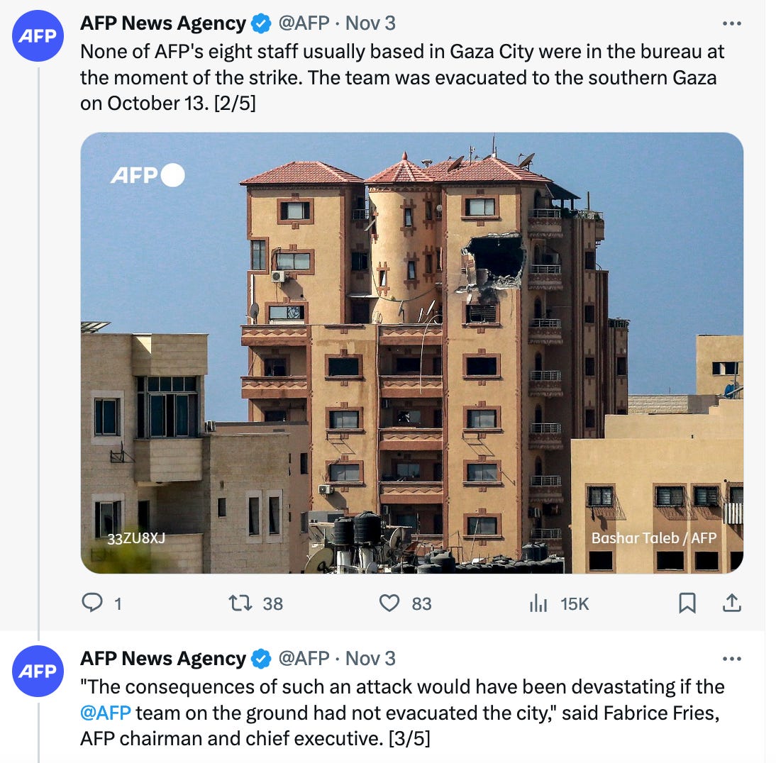 That diplomatic message has grown more nuanced. Another 54 French were trapped inside Gaza, including 2 French children who were killed while their mother and another sibling were badly wounded. The government sent a ship from its navy to support Gaza hospitals. Now it’s sending two military flights with humanitarian aid. Last week, French officials were outraged by an Israeli strike that hit the French Institute in Gaza and have been demanding an explanation from Israel’s government ever since. On Friday, Israel bombed the Agence France-Presse offices in Gaza.