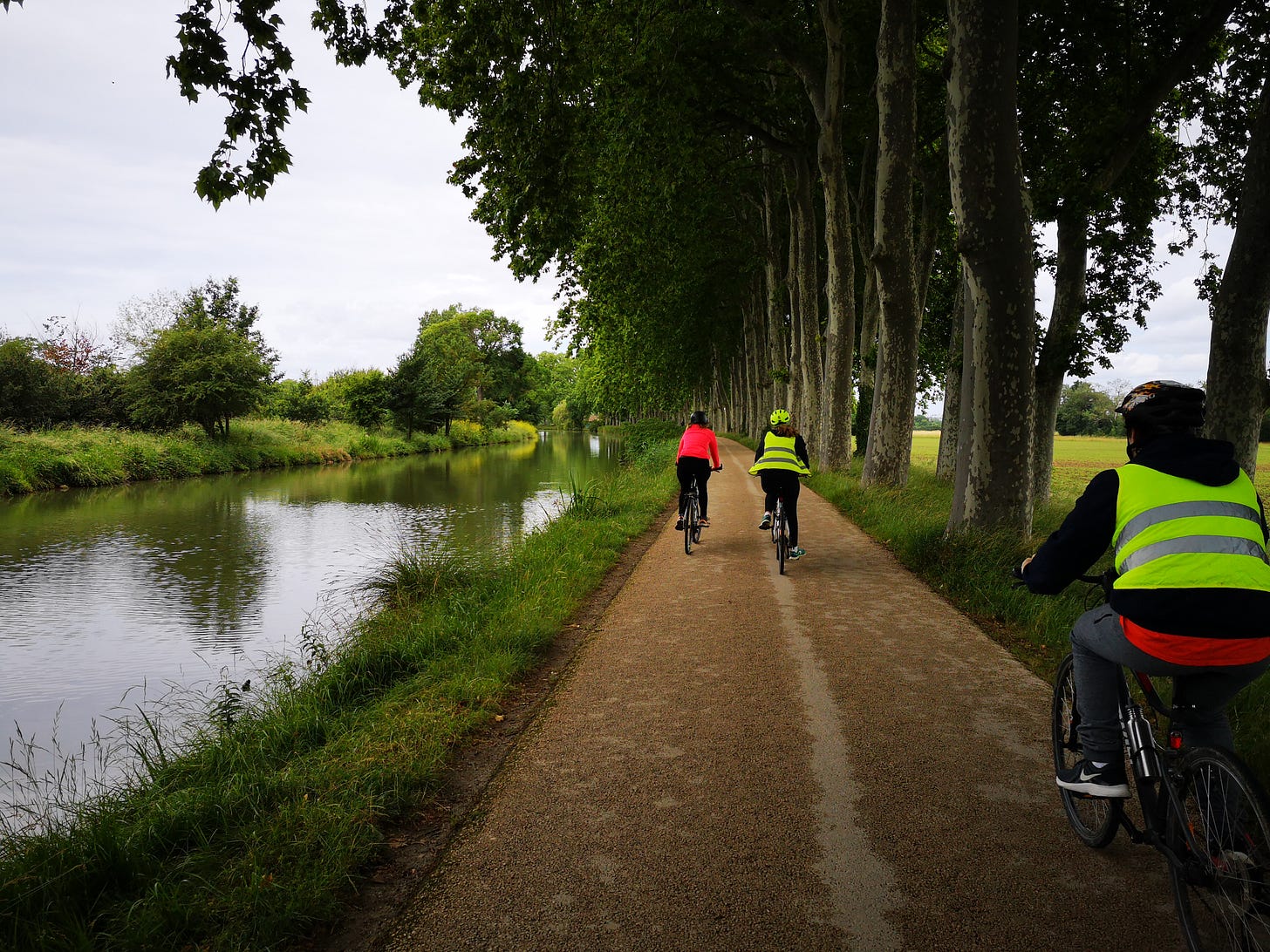 The Canal du Midi runs 240 km from Toulouse to just near the Mediterranean Sea. The canal was considered one of the 17th centuries engineering marvels, though it never quite worked as intended. There is a bike path of mixed quality that runs along the canal, and our family spent 5 days riding the length of it. I’ve been intending to write up our adventure, so for now, will just offer this little glimpse.
