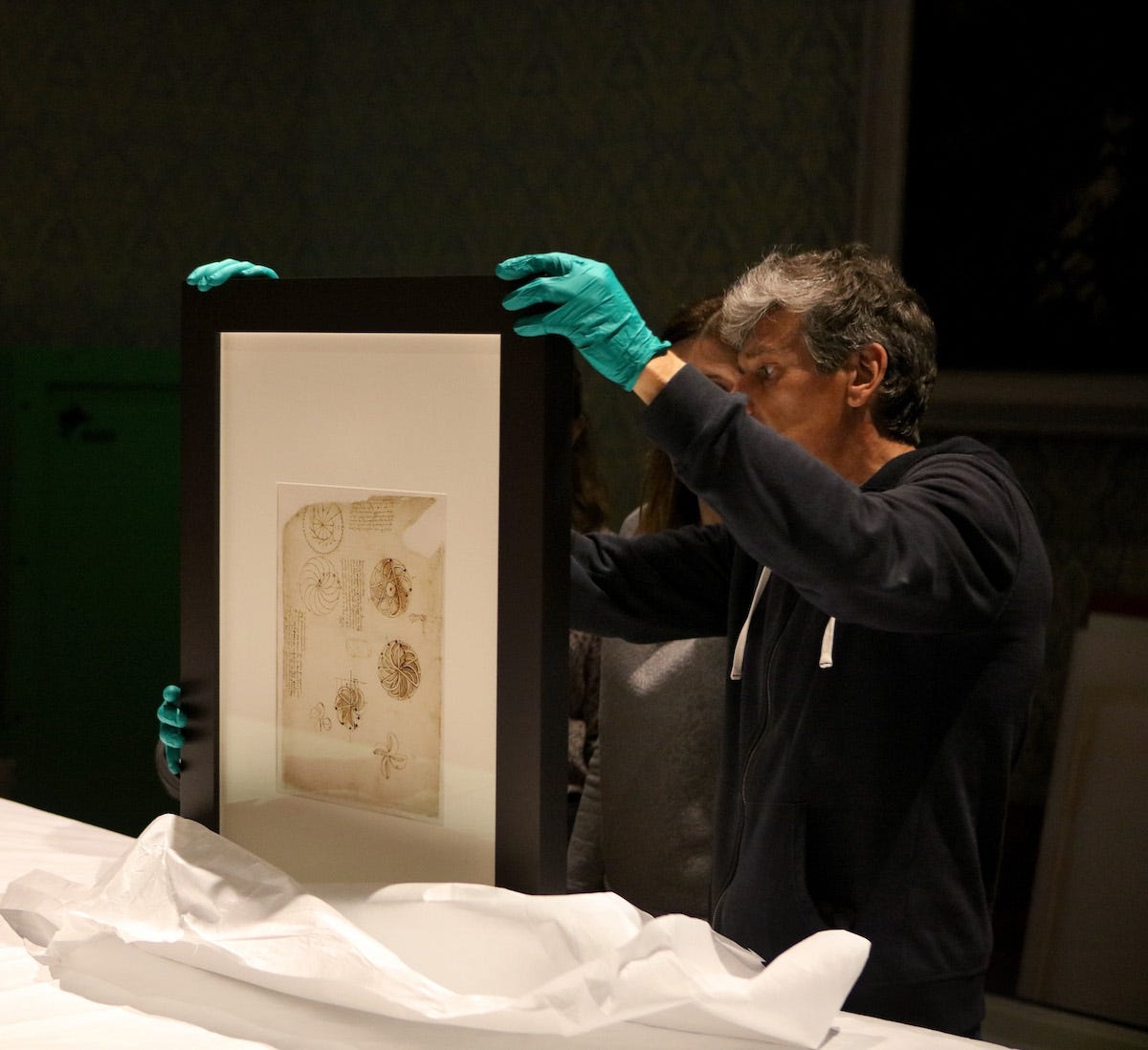 After which, they were hung in a room that is being dedicated to da Vinci as part of the exhibition.