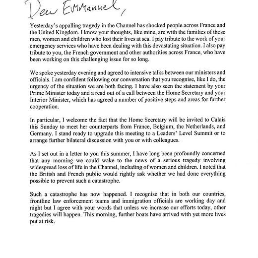 It follows Johnson’s letter to President Emmanuel Macron on Thursday night setting out five steps to avoid a repeat of Wednesday’s tragedy. The letter was sent publicly as a tweet in time for the front pages of UK newspapers and French officials confirmed Macron had not seen the letter before Johnson tweeted it.