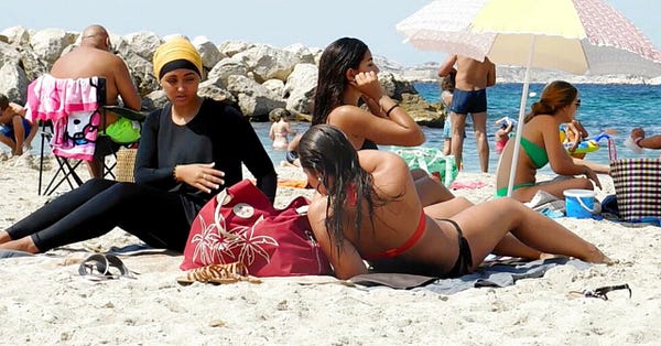 It’s the summer season in France, which also means it’s time for the perennial freakout over the Burkini. That would be the head-to-toe bathing suit worn by some Muslim women.