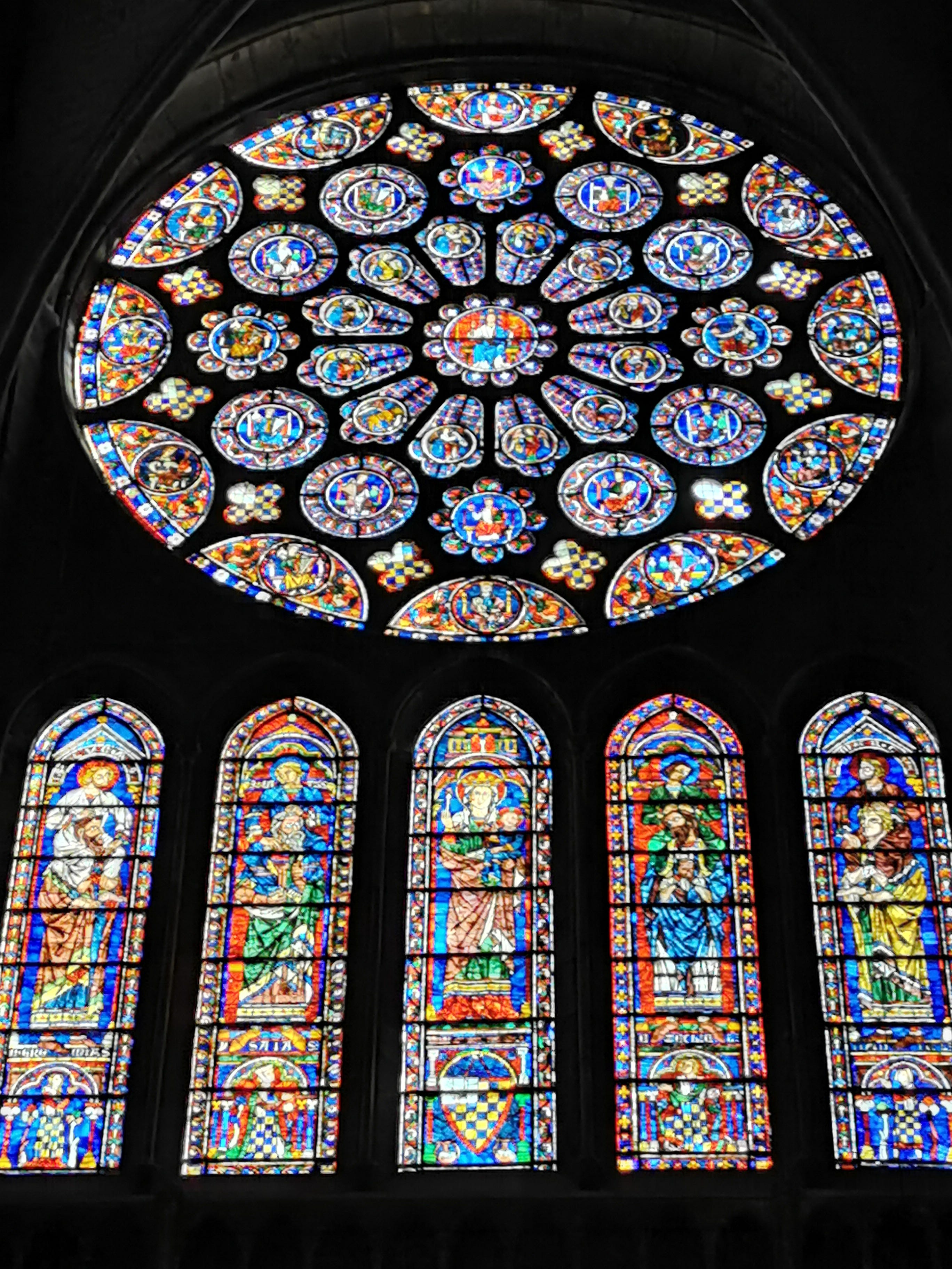 Maybe you can’t travel here. But you can begin fantasizing about your next visit. One stop to consider: Chartres. We visited this city about an hour southwest of France over the winter holiday which is known for its artistic bent and the spectacular stained glass windows of its Notre Dame Cathedral (La cathédrale Notre-Dame de Chartres). I’ll write more about this soon. But here is just a little glimpse:
