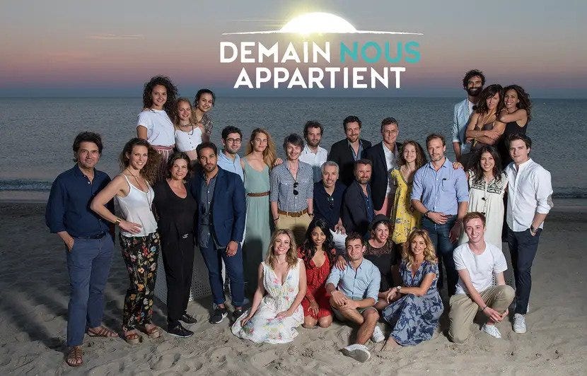 Shows like Plus Belle La Vie (based in Marseille), Demain Nous Appartient (Sète), and Un Si Grand Soleil (Montpellier), are broadcast 5 nights a week around 8 p.m. They are all notably based in cities along the Mediterranean coast because the climate is better for filming year-round and plus beautiful people on the beach is always a winning combination.