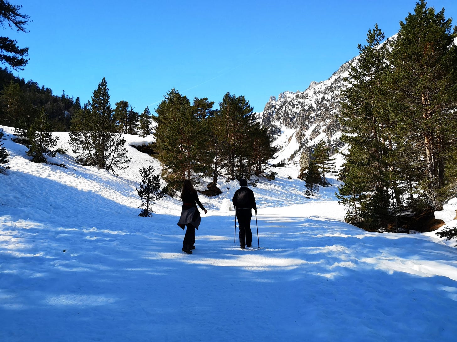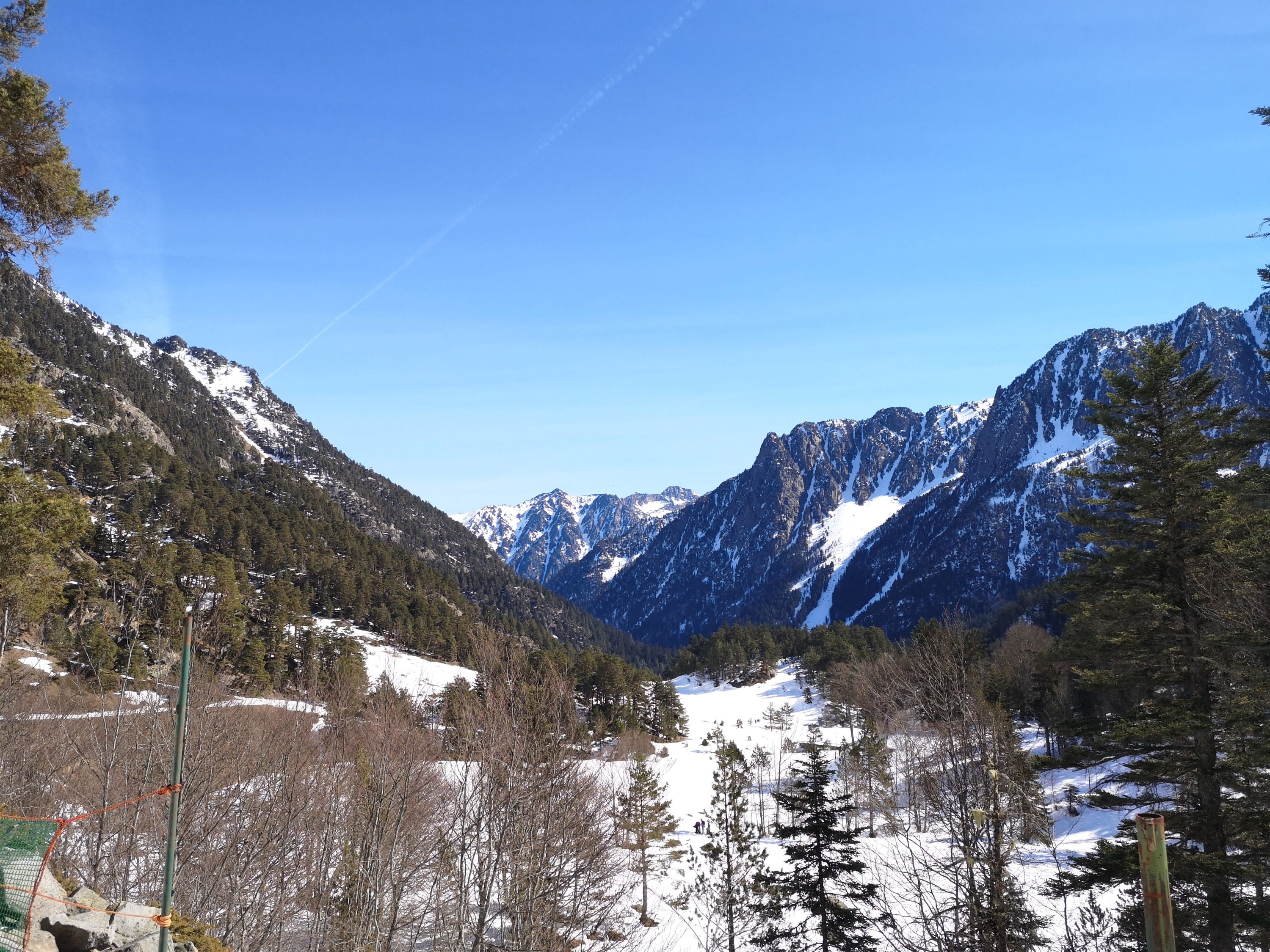 From the parking lot, the views turn spectacular almost instantly. The Pyrénées may not be as high as the Alps, but they have their own majesty in both summer and winter. And on a sunny day with still plenty of snow on the ground, we seemed to have found just the right mix for a great winter hike.