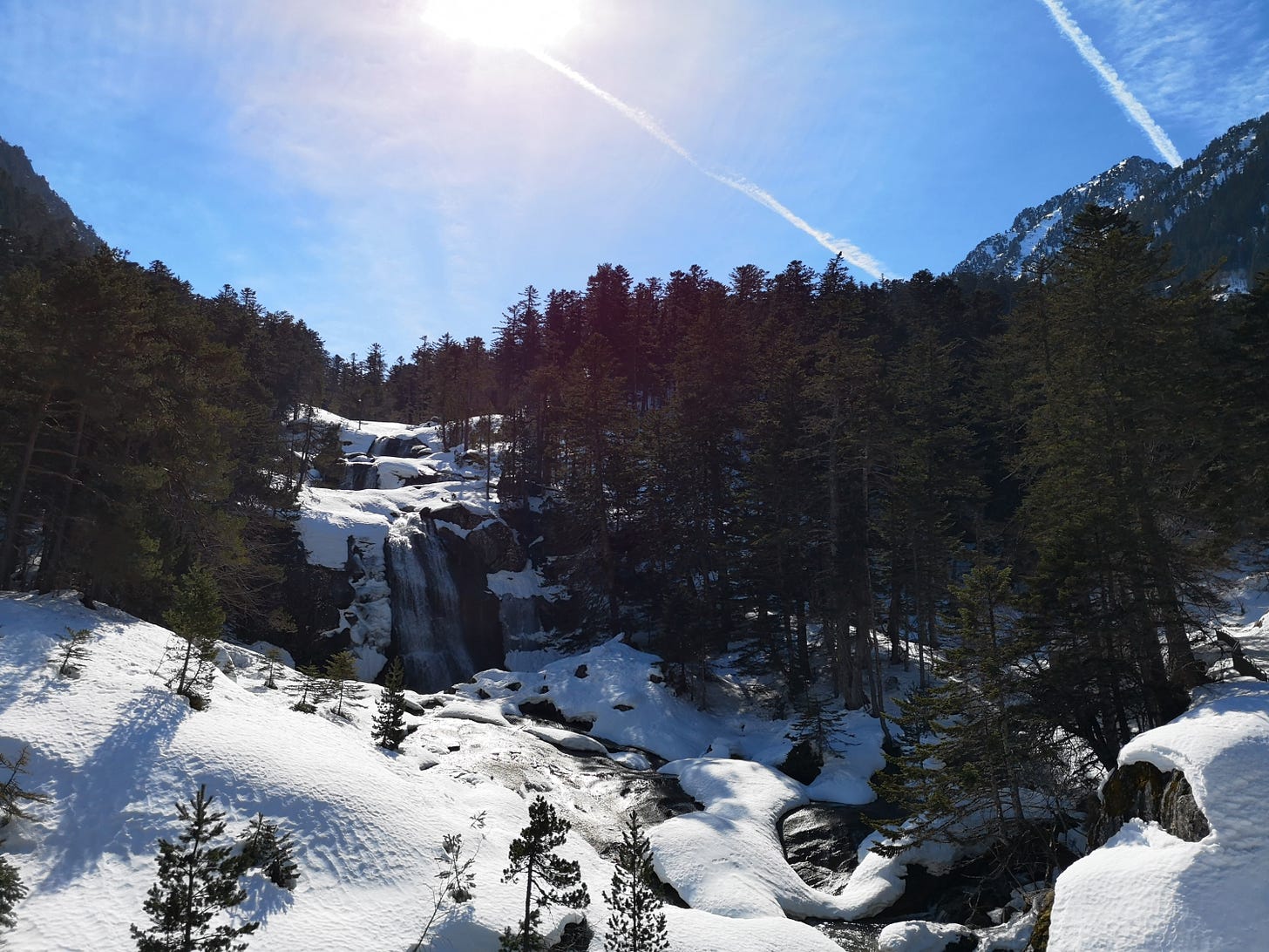 Located about 1,493 meters up, the Pont d'Espagne was once upon a time a trading route between France and Spain. Located in the Pyrénées National Park in the Hautes Pyrénées Departement, the valley now is a pastoral wonderland in the summer that leads to Lake Gaube. In the winter, it's another world where people hike, snowshoe, and cross-country ski.