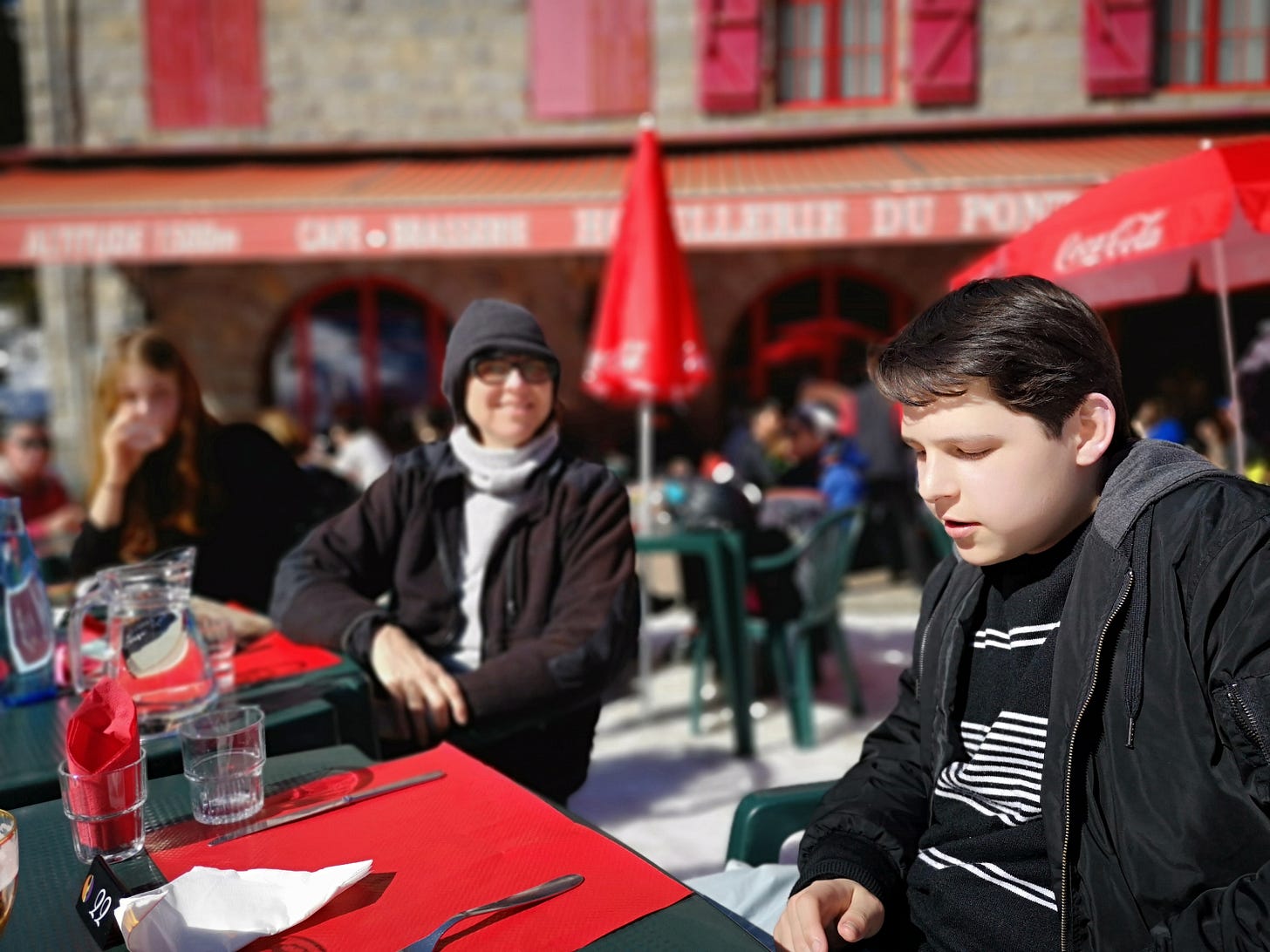 In a bit of luck, we arrived back at the Hôtellerie for a wonderful lunch of local faire. We sat outside on the terrace which was packed. The sun was bright and warm. The waitress was a self-styled comedian who couldn't resist cracking jokes each time she passed by our table.